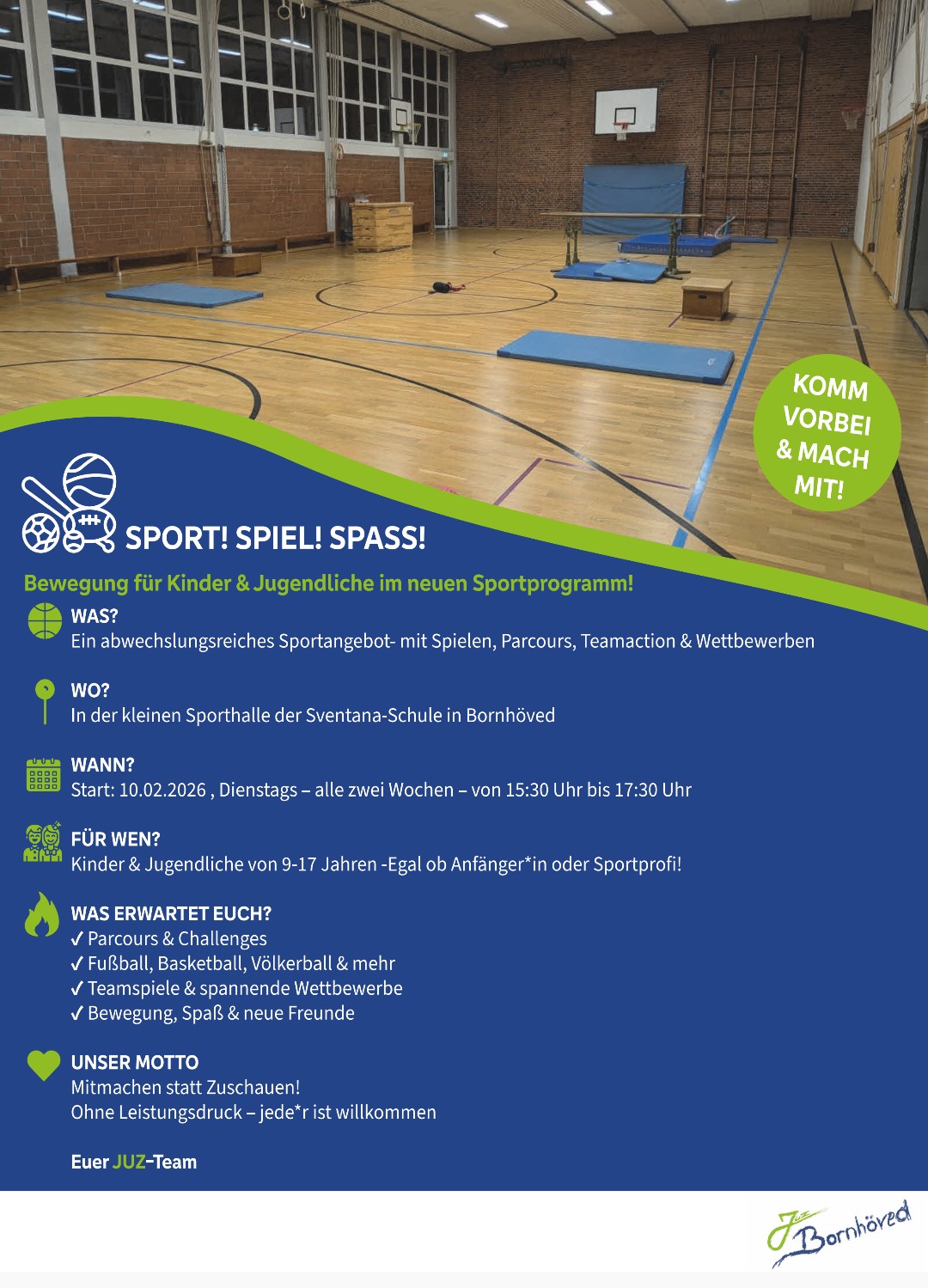 10.02.2026 Dienstag a) Sportprogramm von 15:30 Uhr – 17:30 Uhr in der kleinen Turnhalle